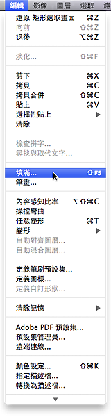 接著,我們用編輯/填滿指令,將選取範圍內填入前景色(此時我的前景色是黑色)。