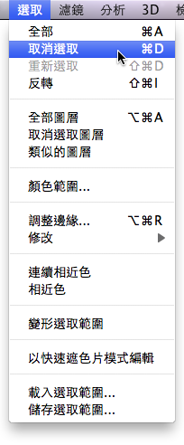 現在我們先來過河拆橋一下,把目前已經沒有利用價值的選取範圍取消掉,路徑如下。
