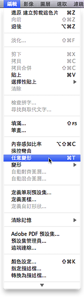 執行任意變形後,會出現八個變形點讓你來變形,但是請注意,為了保持影像的長寬比,請以四個角落的變形點來調整就好,並且在調整的時候,按住shift鍵。