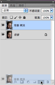 將背景圖層拖曳到底下新增圖層的按鈕上再放開,即可將背景圖層複製一份。
