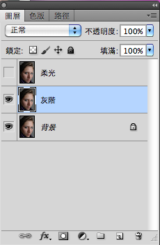 我們先來處理灰階圖層,所以先把柔光圖層的眼睛關掉,然後點選灰階圖層。