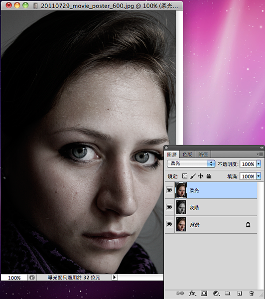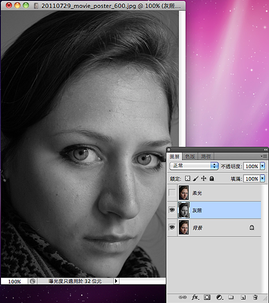 為了方便識別,我們將複製出來的圖層,分別命名為灰階與柔光。