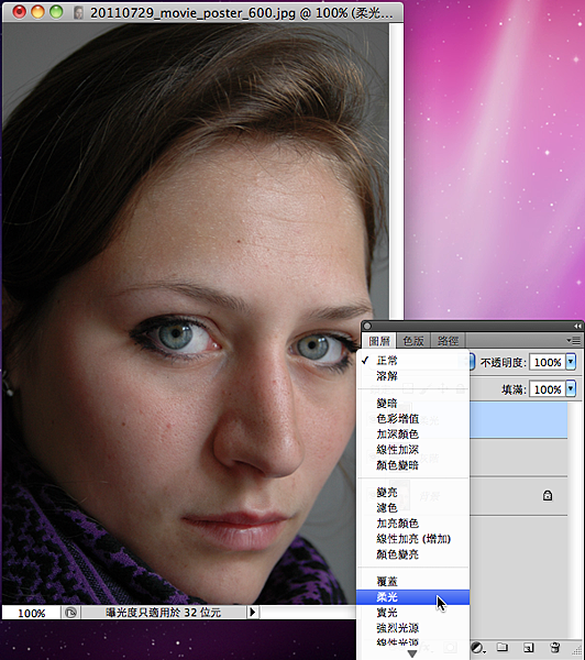 接著要處理柔光圖層,所以再把柔光圖層的眼睛打開,並且點選柔光圖層。